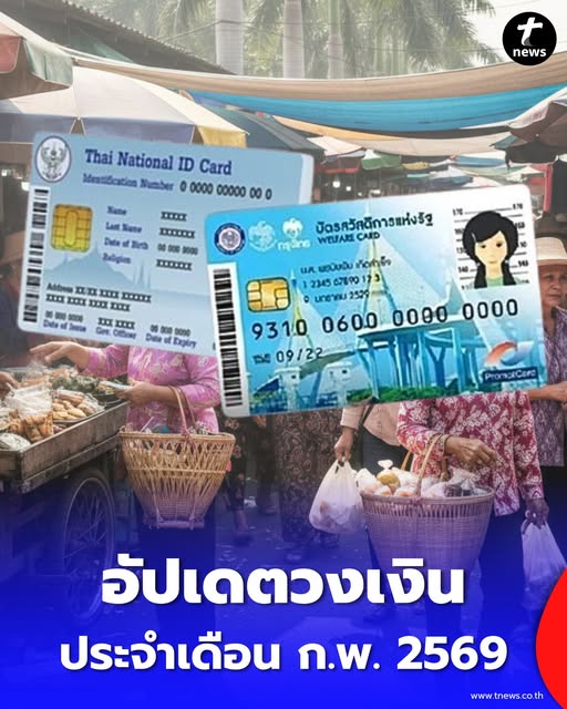 ผู้ถือบัตรสวัสดิการแห่งรัฐ บัตรคนจน จำนวนกว่า 13.45 ล้านคน ยังคงได้รับเงินช่วยเหลือจากรัฐบาลต่อเนื่อง โดยสามารถใช้จ่ายได้ตามกรอบเวลาที่กำหนด ซึ่งผู้มีสิทธิสามารถใช้สิทธิผ่านบัตรประจำตัวประชาชนแบบสมาร์ทการ์ด จะได้รับสิทธิประจำเดือนกุมภาพันธ์ 2569 มีดังนี้